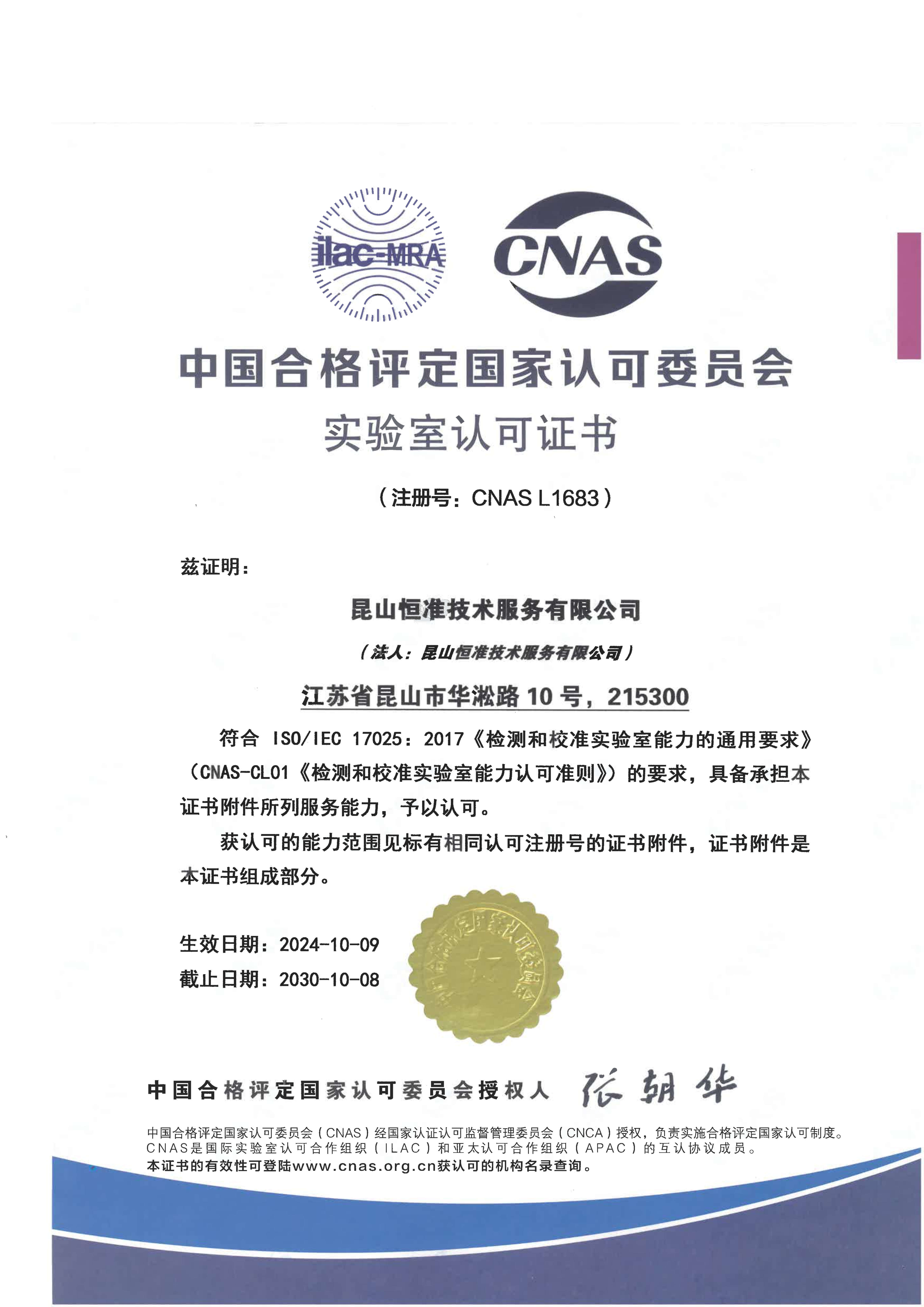 2003年08月,成立昆山恒準技術(shù)服務(wù)有限公司,依據(jù)ISO17025要求建置